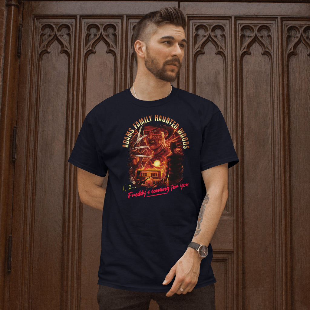 Get ready to unleash your inner horror fan with AFHW Freddy! Made from soft and comfortable Gildan G5000 t shirt, it features the iconic Freddy Krueger. Perfect for those who love a good scare. Don't miss out on this spooky must-have.